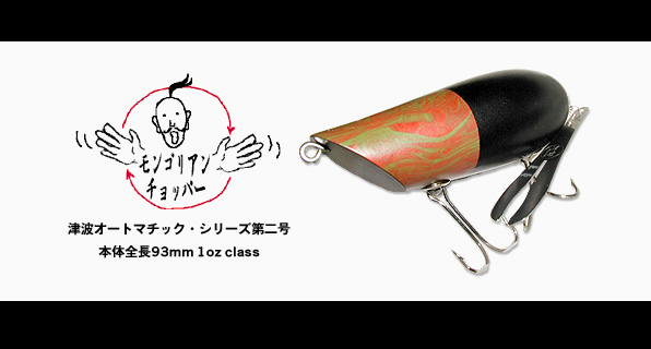このブレードは、その細長い形状ゆえ、従来のバズやフラップテイル、スウィッシャーなどとは全然異質の「ポロポロリン」という感じのめちゃくちゃええサウンドを奏でる。細長い二股のブレードで、水を切る。その様は、まるで妖しげな東洋武術、連続手刀斬りとでも言おうか?しかも、ペラを上にして眺めたその姿は、弁髪の東洋人!そのため、このプラグを「モンゴリアン・チョッパー」、このペラを「ワラ・チョッパー(Water Chopper)」と命名。
