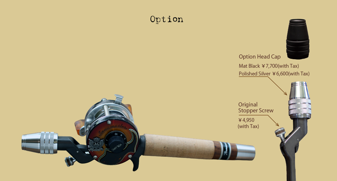 ポリッシュトシルバーとマットブラックのオリジナルヘッドキャップ、ウォルナットをアルミでサンドした同じくオリジナルのストッパースクリューのオプションあり。