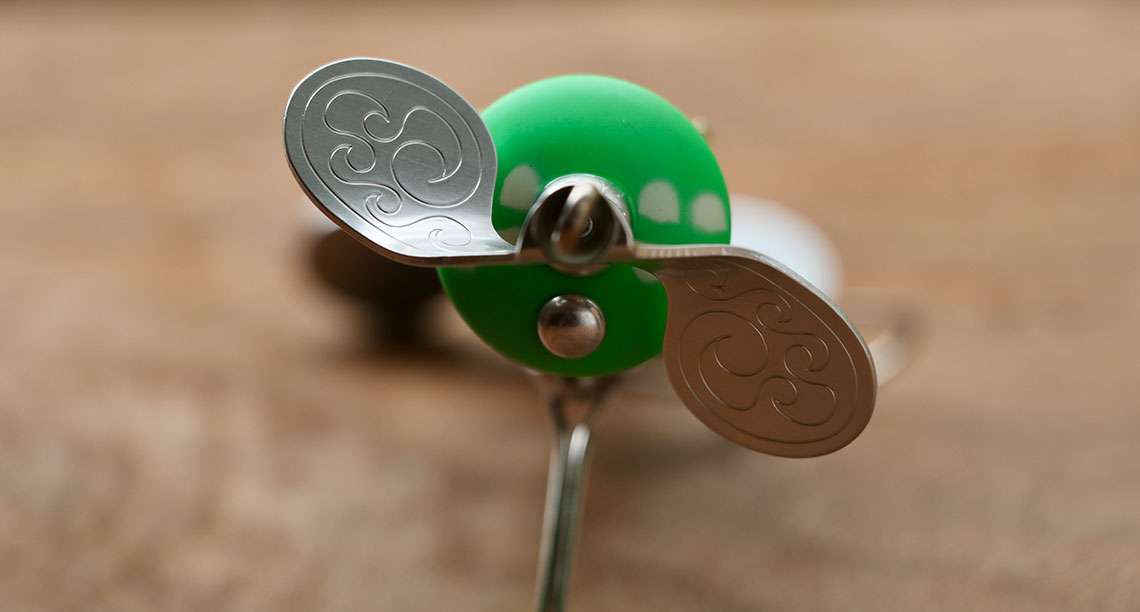 ボディはタツマキのシルエットを踏襲しつつ、 フロントにはリベットを組み込み、わずかな干渉で独自のクラック音を生む設計。 プロップと干渉しすぎない距離感を得るため、断面には最終的にテーパーを施した。
