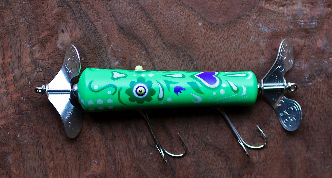 メインメソッドはシンプルにただ巻き。 その際にアルミバズプロップとリベットが微妙に触れ合い、バズベイトとは異なる控えめな“鳴き”を生む。