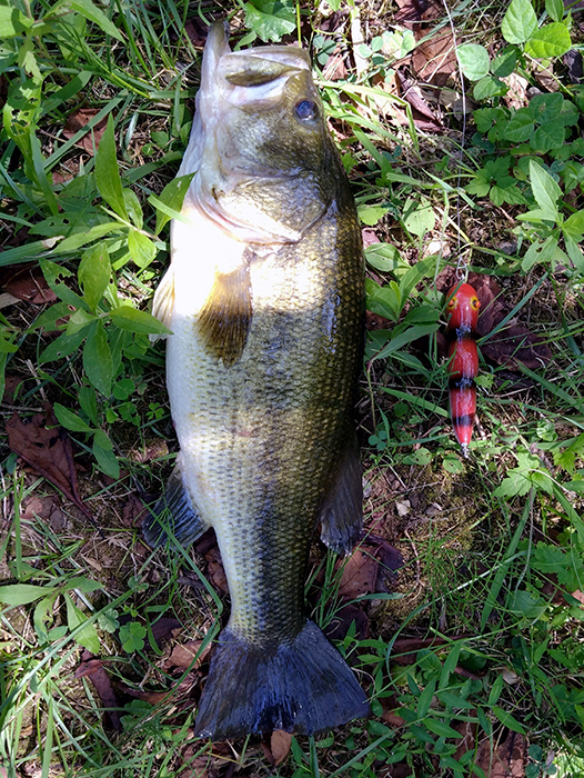 そう言えば今年は巳年、これしかないと思い、初期のヘビと後期のヘビ2個のみ握りしめ最奥のワンドへGO!後から確認すると水中に木が沈むナイスポイントにヘビキャスト!ゆっくりな首振りでいきなりバイト、しかしミスバイト、そこから速めのチョンチョンチョンチョン首振りアクションしていると、再びバイト!キャッチしたバスはとても綺麗でお腹パンパンのナイスバス。最高でした!