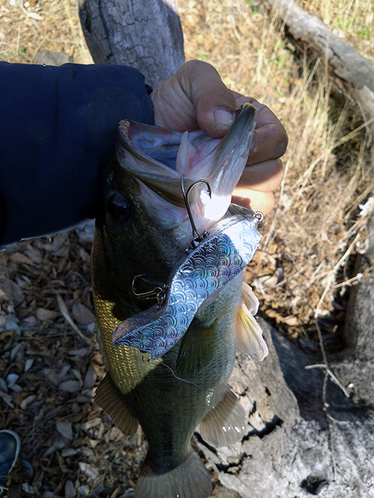 仕事終わりに雨パワー有るなと思い野池へ。シャローとディープが隣接するポイントにオーガストキャストし、一回アクション、ステイ、2回アクションでバイト!凄い引きするナイスバス、最高でした。