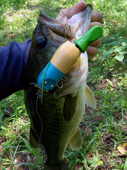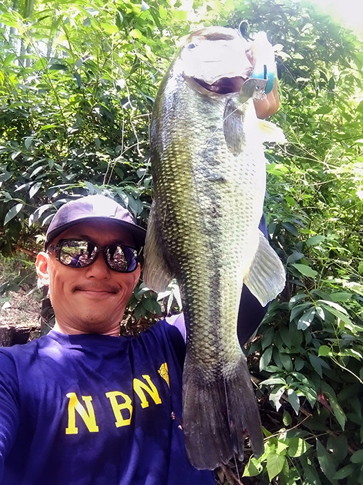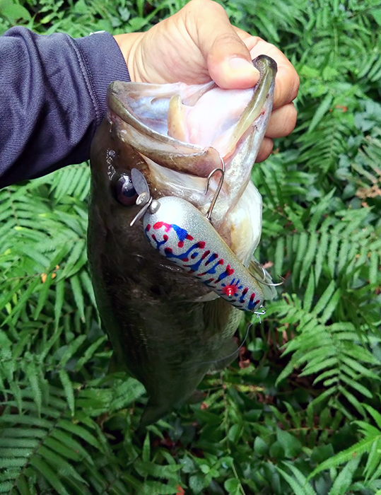 朝一、シダ植物が生い茂る初めてポイントに到着。風通し良いワンドのポイントに久々登場のビンビキャスト!ロングステイからクイックイッ首振りアクションでナイスバイト。ビンビの首振りアクションは最高です!家族サービスを終え、家でゆっくりするつもりが気づけば野池にw数カ所ポイント廻ってノーバイト、次に入った小さなインレットのポイント。少ししか水は排出されてなかったですが、この暑さならきっとバス達には楽園のはず。ビーバーキャストして、ステイ、チョンチョンアクションからのただ引きで激しくバイト!ビーバーはただ引きでこそ真価を発揮するスーパールアー!汗でビショビショになりましたが最高な休日をありがとうございます!